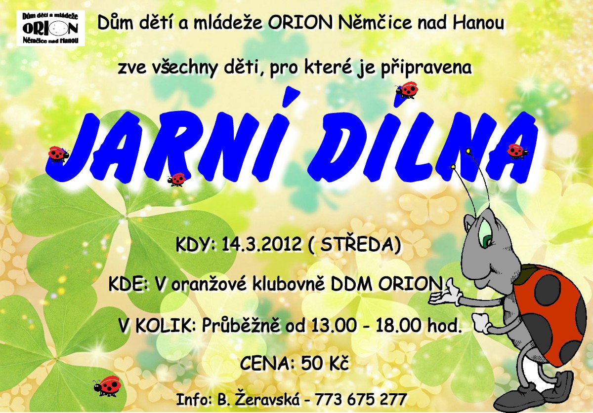 Na přiložených pozvánkách naleznete aktivity, které v současné době připravuje DDM Orion Němčice nad Hanou pro děti i pro dospělé. Na jednotlivých pozvánkách jsou uvedeny termíny a čas konání.