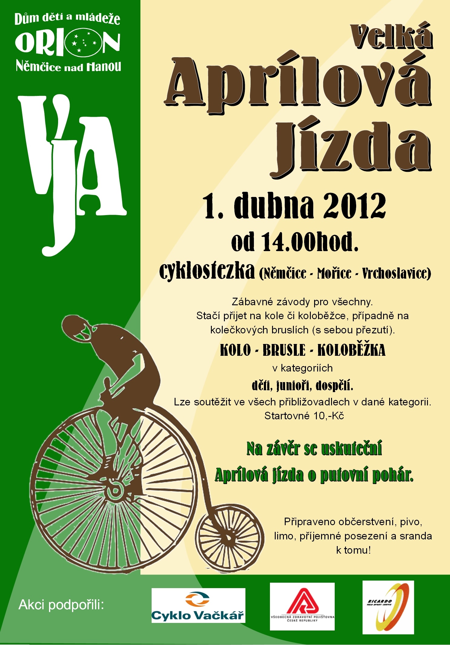 Jedná se o první ročník soutěže s aprílovým podtextem. Přijďte strávit nedělní odpoledne na cyklostezku, kde na vás čekají soutěže pro všechny věkové kategorie a různá dopravní přibližovadla, také občerstvení ze strany hasičů a příjemné posezení.