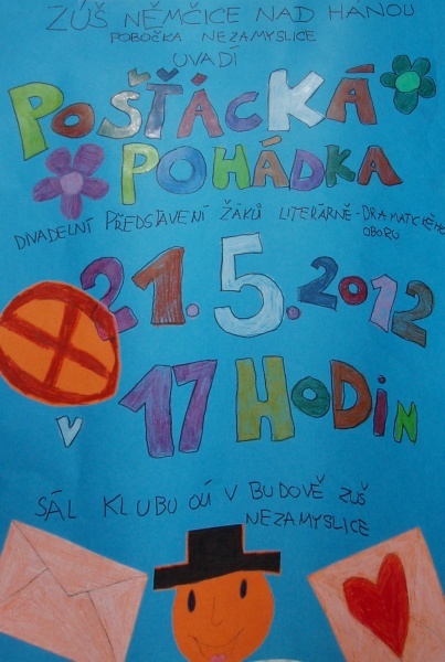ZUŠ Němčice nad Hanou - pobočka Nezamyslice - zve všechny, kteří mají rádi pohádky, na "Pošťáckou pohádku" v podání žáků literárně-dramatického oboru.