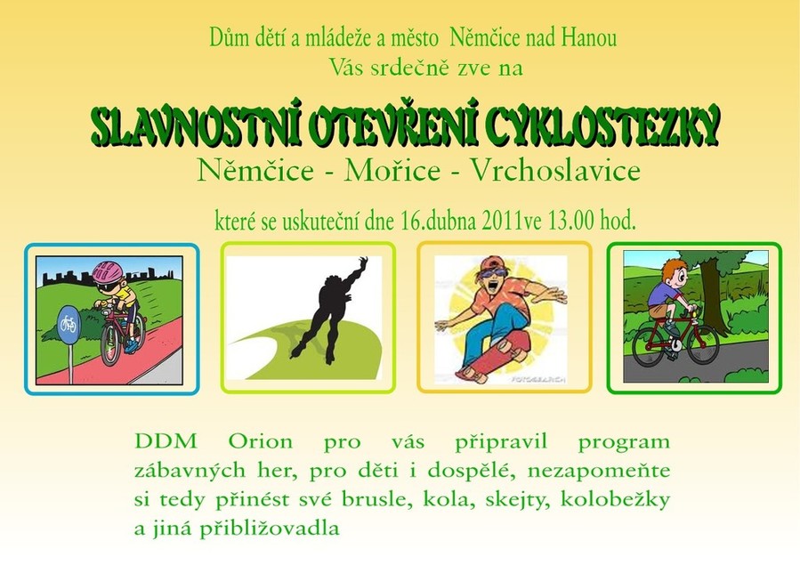 Úvod > Život u nás > Aktuality > Archiv zpráv > Slavnostní otevření cyklostezky Němčice - Mořice - Vrchoslavice