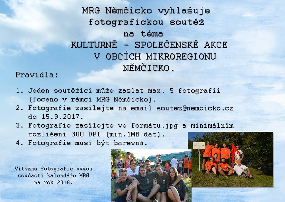 Podobně jako v loňském roce vyhlašuje MRG Němčicko fotosoutěž o ceny.